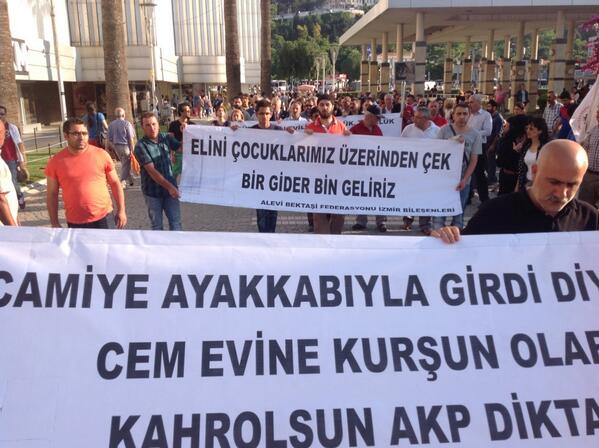 19.08 Cemevi önündeki basın açıklamasından: Sabah saatlerinden beri buraya hiç bir yetkili gelmedi. Savcı olayın yaşandığı yere gelmedi. Sürekli en ufak bir şeyde Cemevi polisler tarafından hedef alınıyor.