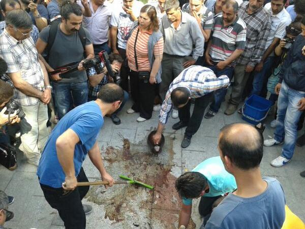 16.29 Uğur Kurt’un Cemevi avlusundaki kanı temizleniyor