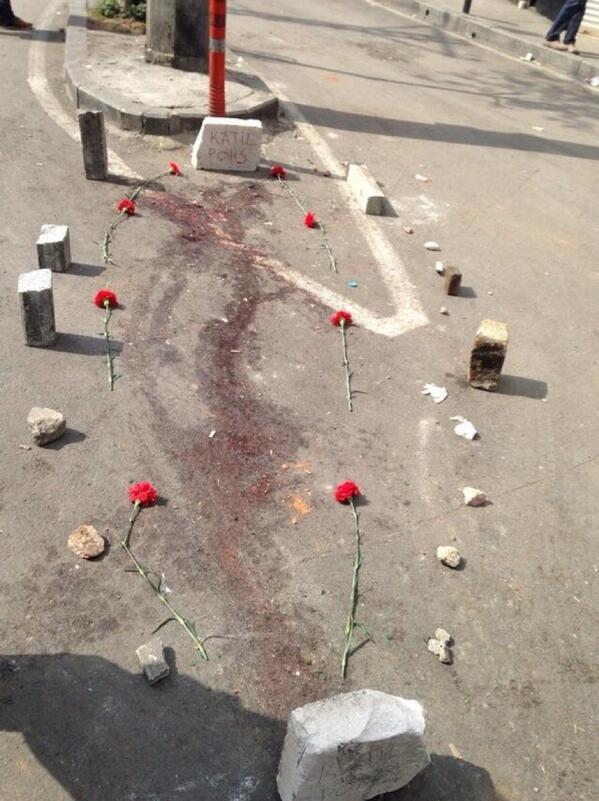 17.10 Okmeydanı’nda dün gece hayatını kaybeden ve kimliği halen tespit edilemeyen ikinci kişinin vurulduğu yere karanfiller bırakıldı